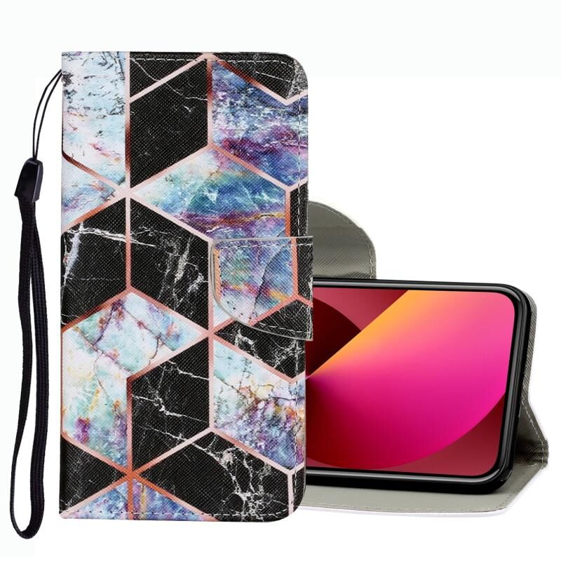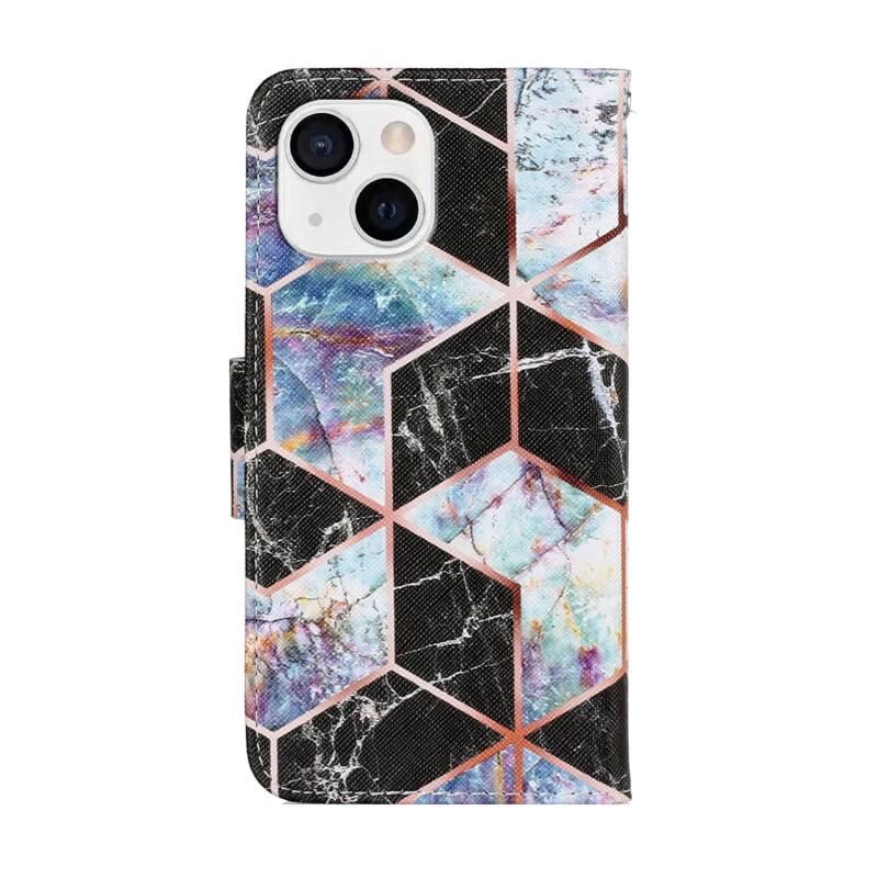 Θήκη τηλεφώνου από δέρμα με έγχρωμο σχέδιο για iPhone 13 (Μαύρο Μάρμαρο)