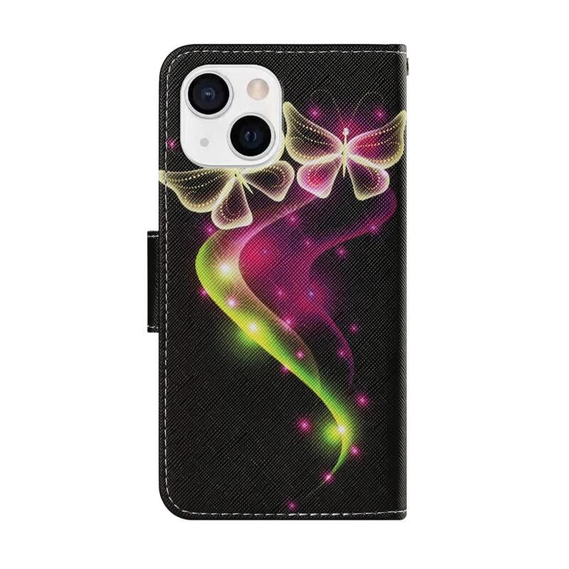 Θήκη τηλεφώνου από δέρμα με πολύχρωμο σχέδιο ζωγραφικής για iPhone 13 (Ζευγάρι Πεταλούδες)