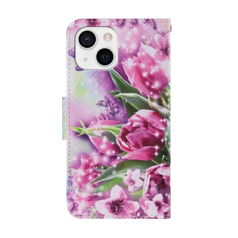 Θήκη τηλεφώνου από δέρμα με έγχρωμο σχέδιο (Rose Butterfly) για iPhone 13.