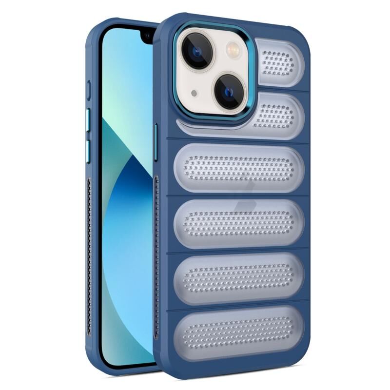For iPhone 13 Cooling Armor Translucent Mesh Breathable Phone Case(Blue)