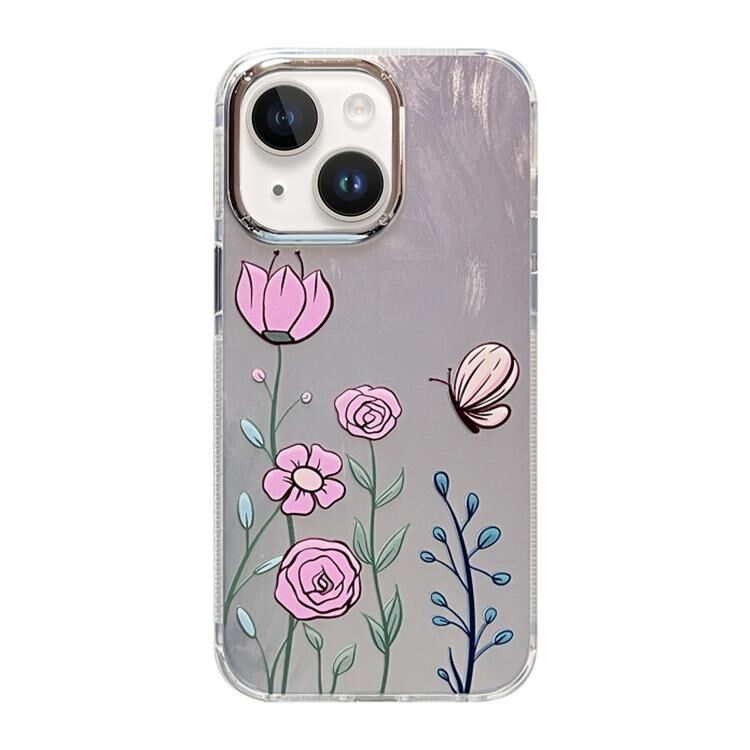 For iPhone 13 Cooling Flash Feather TPU + PC Phone Case(Butterfly Flowers)