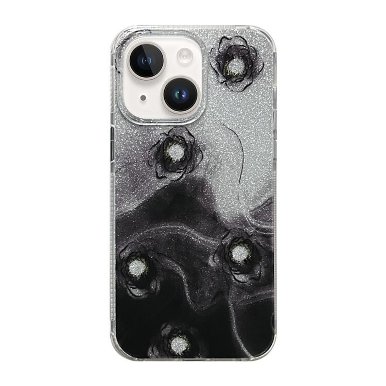 For iPhone 13 Cooling Flash Feather TPU + PC Phone Case(Ink Rose)