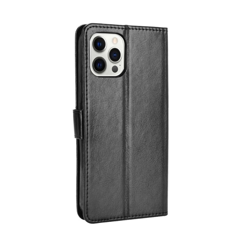 Θήκη δέρματος οριζόντιας αναδίπλωσης για iPhone 13 με υφή Crazy Horse, με βάση & θήκες καρτών & κορδόνι (Μαύρο)