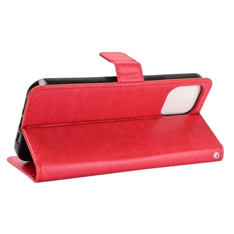 Θήκη δέρματος οριζόντιας αναδίπλωσης για iPhone 13 με υφή Crazy Horse, με βάση & θήκες καρτών & κορδόνι (Μαύρο)