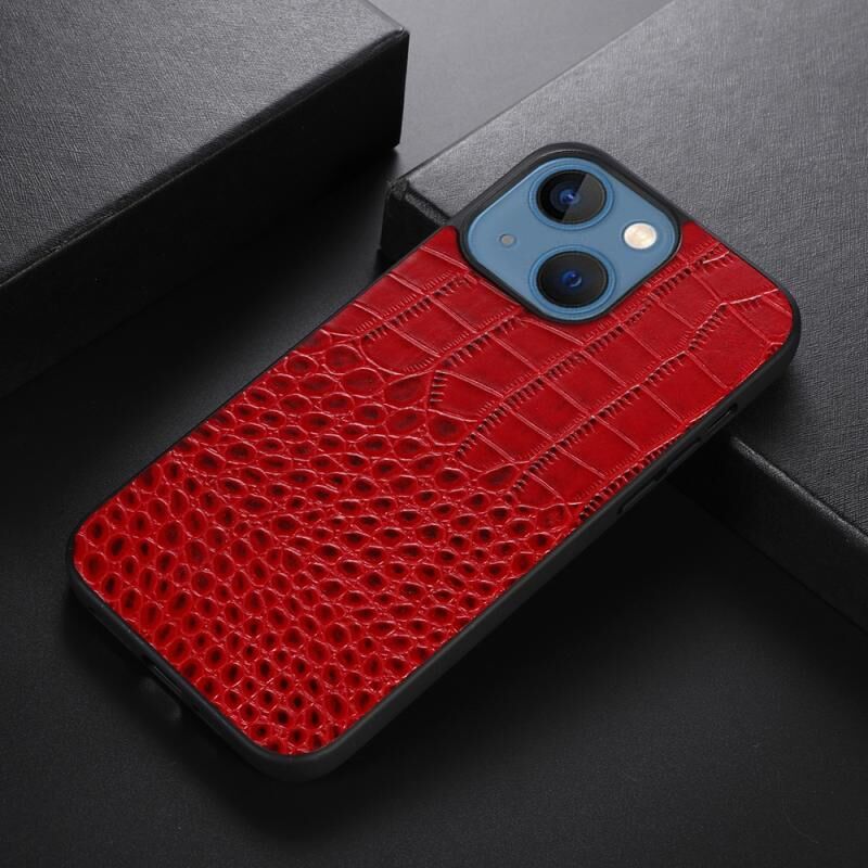 Θήκη για iPhone 13 από γνήσιο δέρμα αγελάδας με επικάλυψη κροκόδειλου (Κόκκινο)