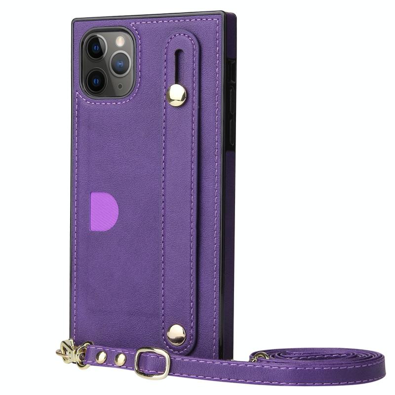 For iPhone 13 Crossbody Lanyard Shockproof Protective Phone Case(Purple)