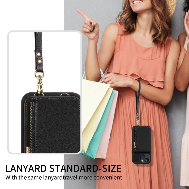 For iPhone 13 Crossbody Lanyard Zipper Wallet Leather Phone Case(Black)
