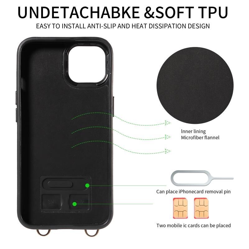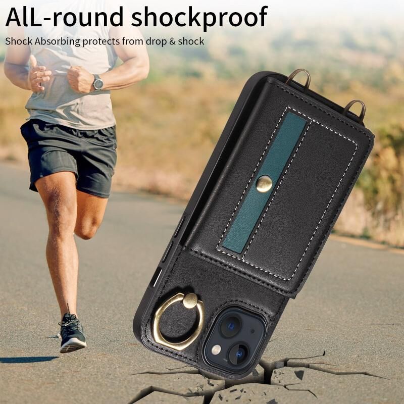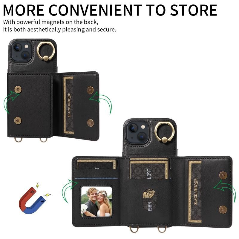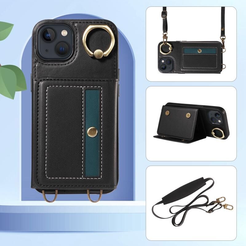 For iPhone 13 Crossbodys Card Bag Ring Holder Leather Phone Case(Black)