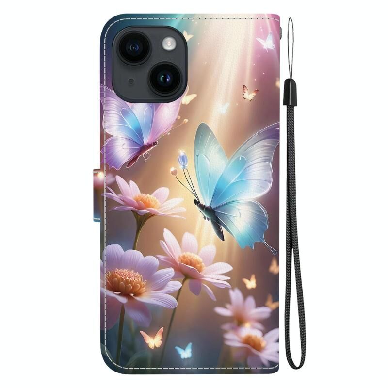 Θήκη τηλεφώνου από δέρμα με πολύχρωμο σχέδιο κρυστάλλινης υφής για iPhone 13 (Πεταλούδα, Αγάπη, Λουλούδι)