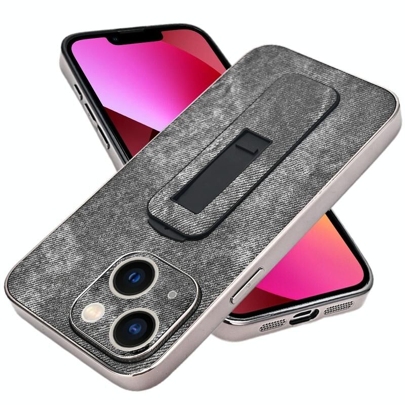 Θήκη τηλεφώνου με ψύξη για iPhone 13, σχέδιο Denim, επιμεταλλωμένο, αναδιπλούμενο στήριγμα (Μαύρο)