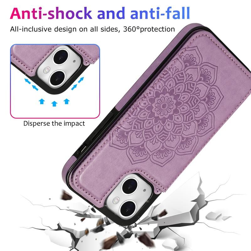 For iPhone 13 Double Buckle Mandala Pattern PU+TPU Protective Case with Card Slots & Holder & Photo Frame(Purple)