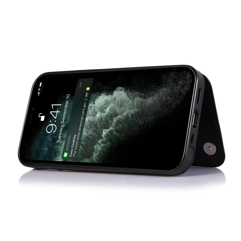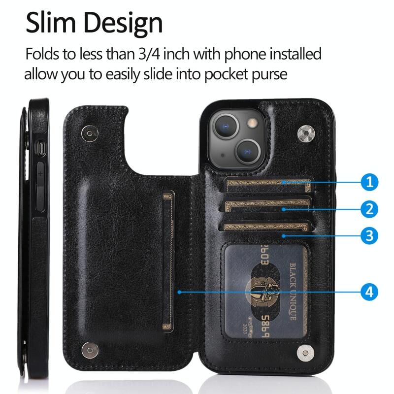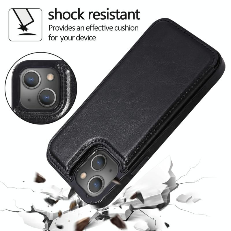 For iPhone 13 Double Buckle Shockproof PU Protective Case with Card Slots & Holder(Black)