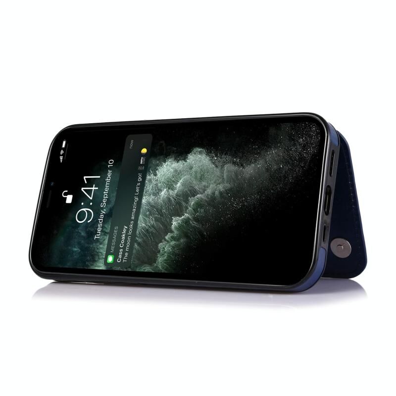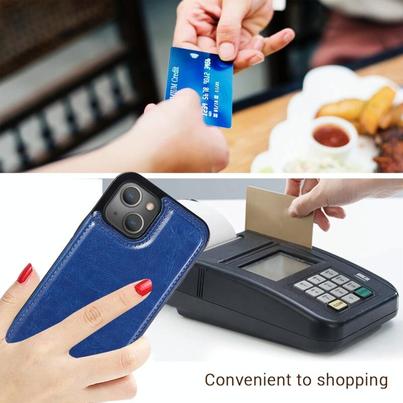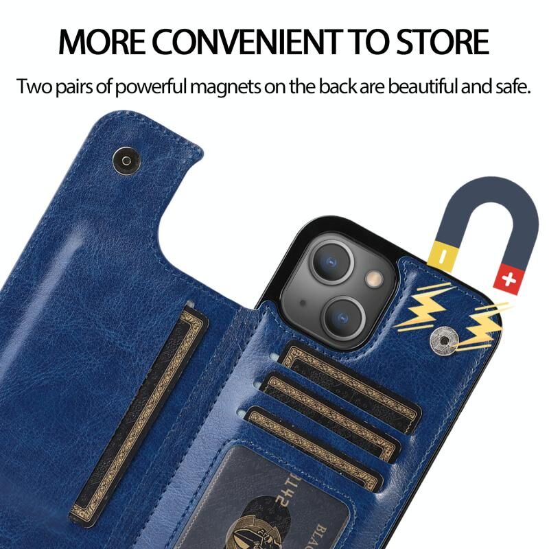 For iPhone 13 Double Buckle Shockproof PU Protective Case with Card Slots & Holder(Blue)