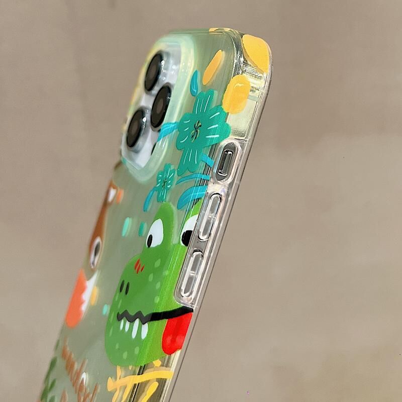 For iPhone 13 Double Sided IMD Full Coverage TPU Phone Case(Green Dinosaur Fox Tail)