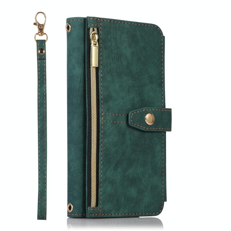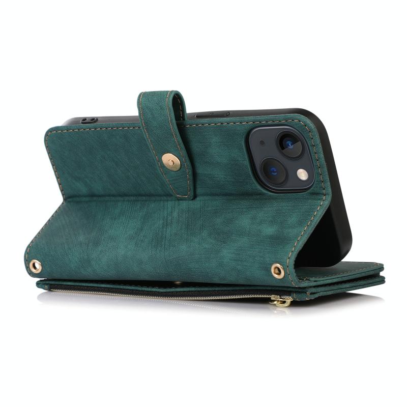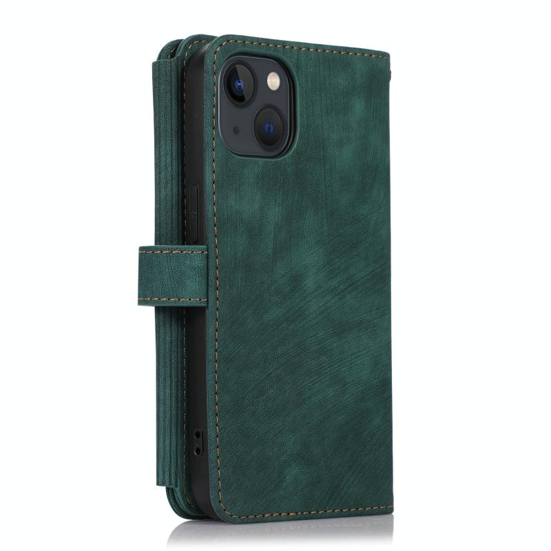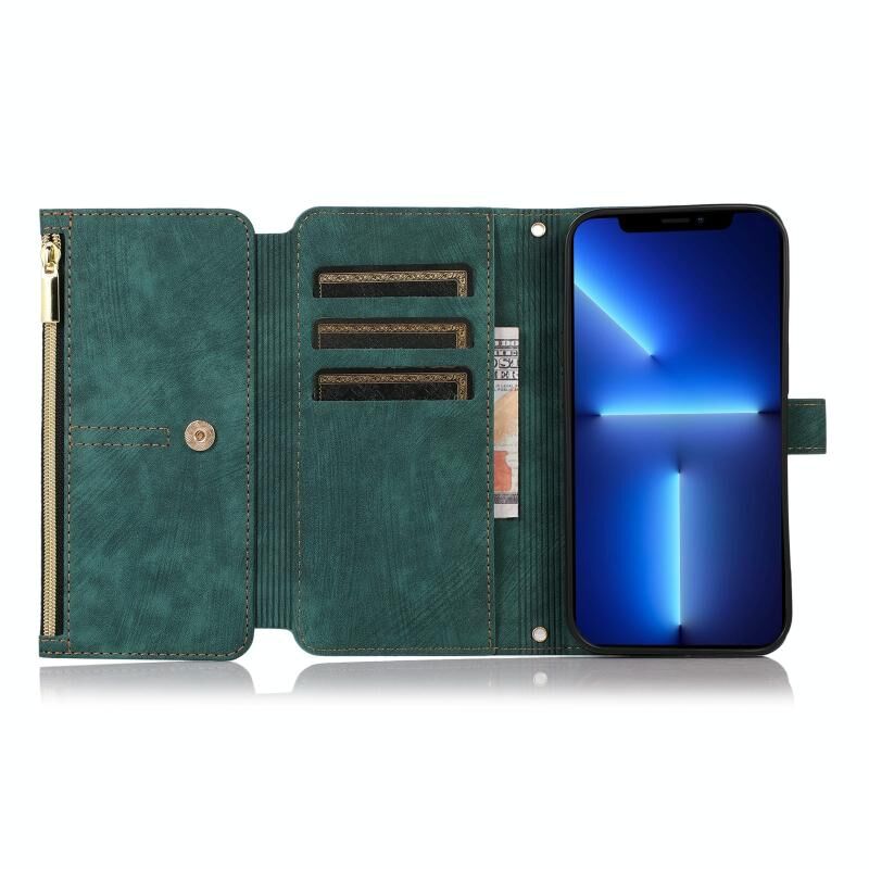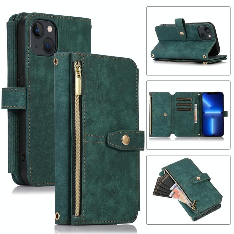 For iPhone 13 Dream 9-Card Wallet Zipper Bag Leather Phone Case(Green)
