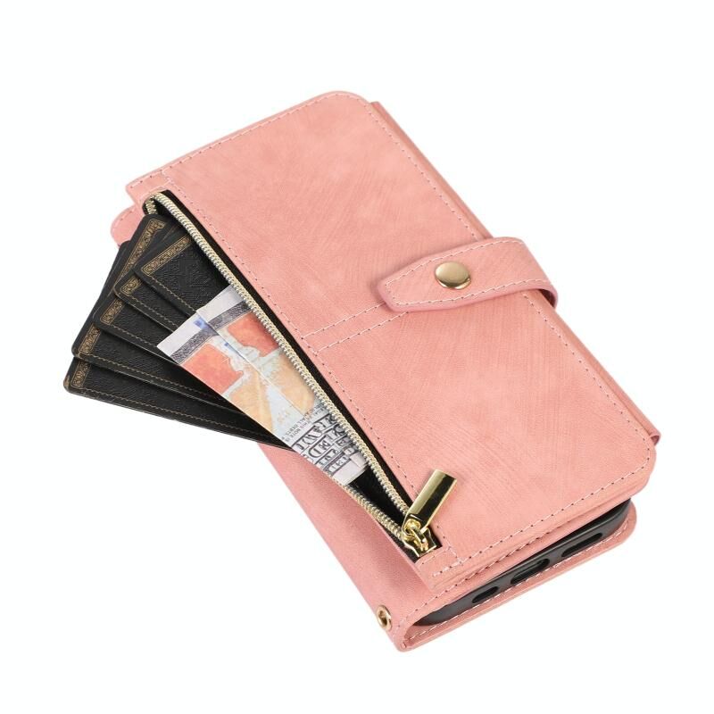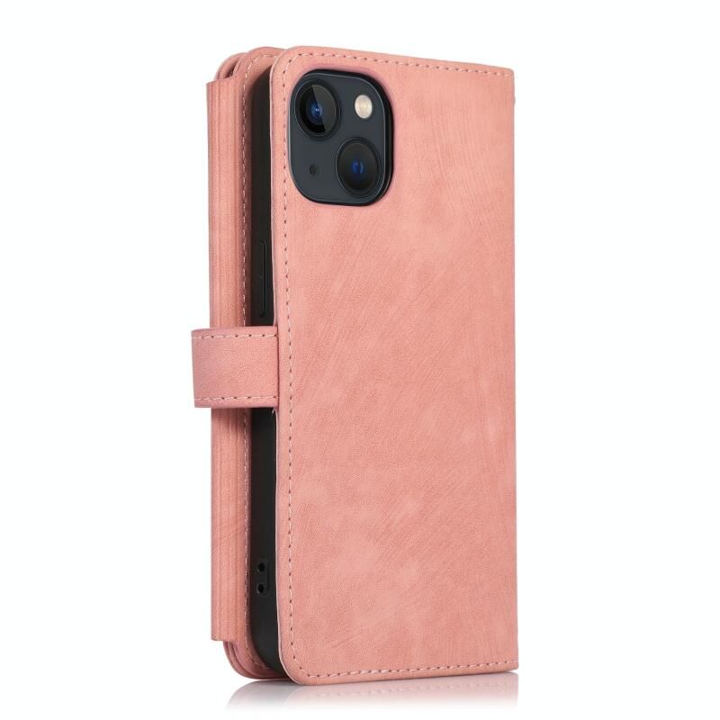 For iPhone 13 Dream 9-Card Wallet Zipper Bag Leather Phone Case(Pink)