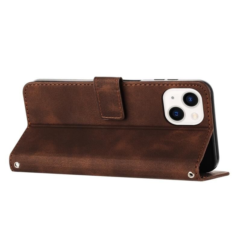For iPhone 13 Dream Triangle Leather Phone Case with Lanyard(Brown)