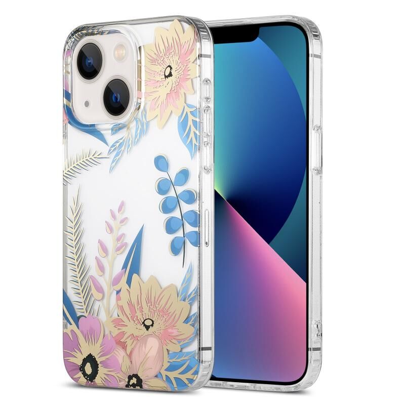 For iPhone 13 Dual-side Laminating IMD PC Hybrid TPU Phone Case(Lotus)