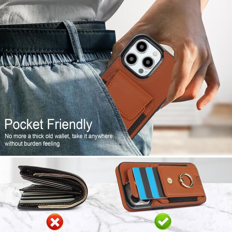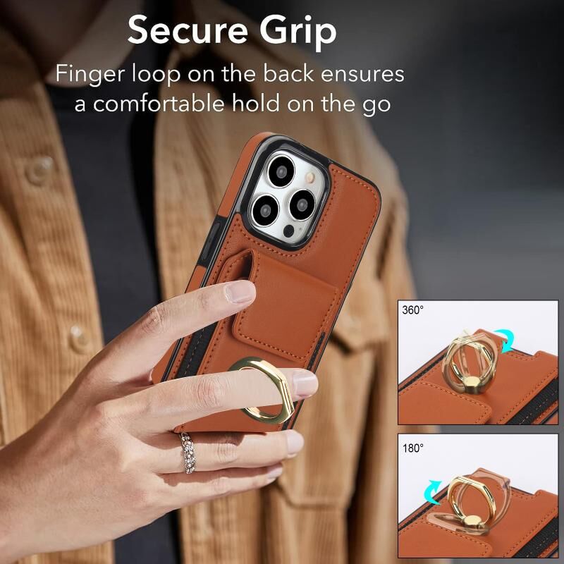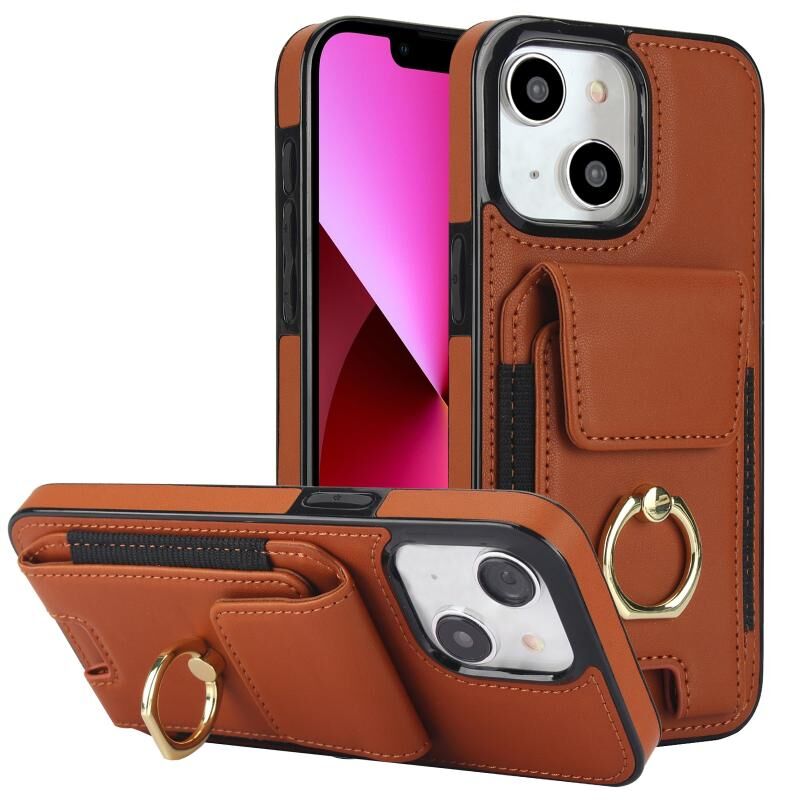 Θήκη για iPhone 13 με ελαστική τσέπη για κάρτες και δαχτυλίδι στήριξης (Καφέ)