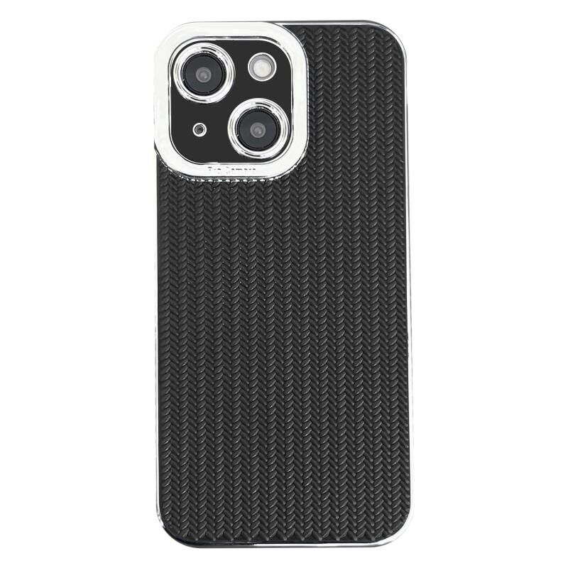 For iPhone 13 Electroplated Silver Edge Grain Texture TPU Phone Case(Black)