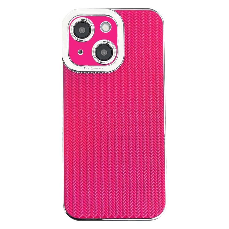 For iPhone 13 Electroplated Silver Edge Grain Texture TPU Phone Case(Rose Red)