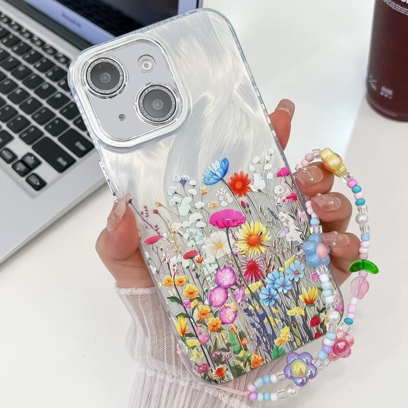 For iPhone 13 Electroplating Flower Texture Wristband TPU Phone Case(Flowers SH4)
