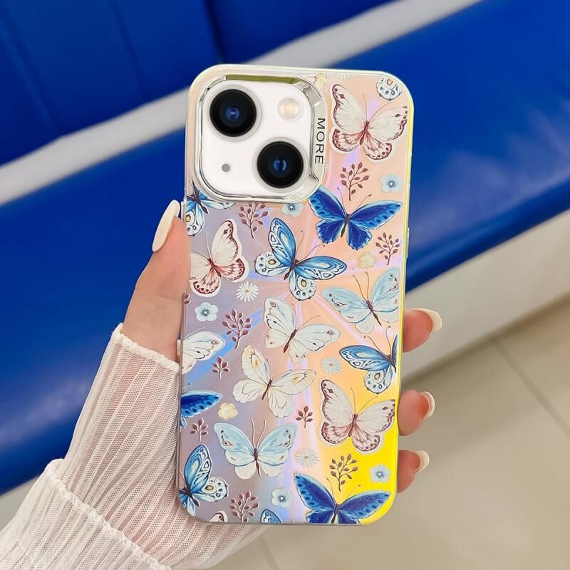 Θήκη τηλεφώνου για iPhone 13 με ηλεκτρολυτική επίστρωση και σχέδιο πεταλούδας με λέιζερ (Ροζ Πεταλούδες AB2)