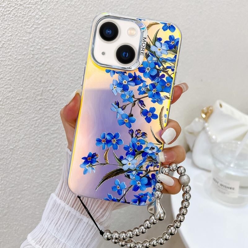 Θήκη τηλεφώνου με ηλεκτρολυτική επίστρωση και λουλούδι λέιζερ για iPhone 13 με λουρί καρπού (Myosotis AH2)