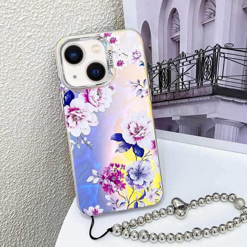 Θήκη τηλεφώνου με ηλεκτρολυτική επίστρωση και λουλούδι λέιζερ για iPhone 13 με λουρί καρπού (Παιώνια AH11)