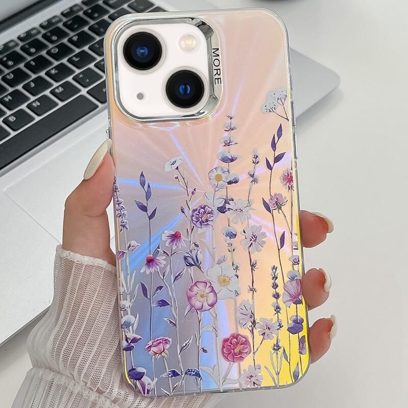 For iPhone 13 Electroplating Laser Flower Texture TPU Phone Case(Flower AH1)