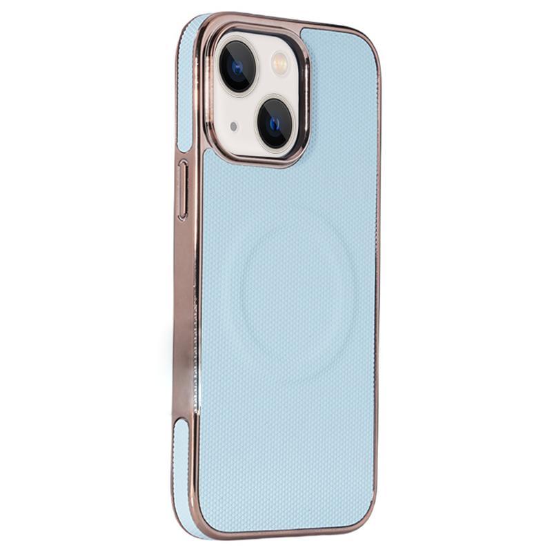 For iPhone 13 Electroplating Soft Side Sticker Leather MagSafe Phone Case(Sky Blue)