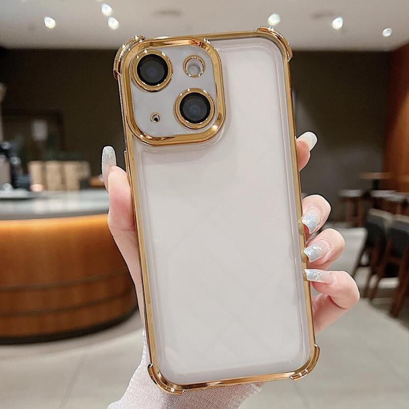 For iPhone 13 Electroplating Space TPU Four-corner Shockproof Phone Case with Lens Film(Desert Gold)