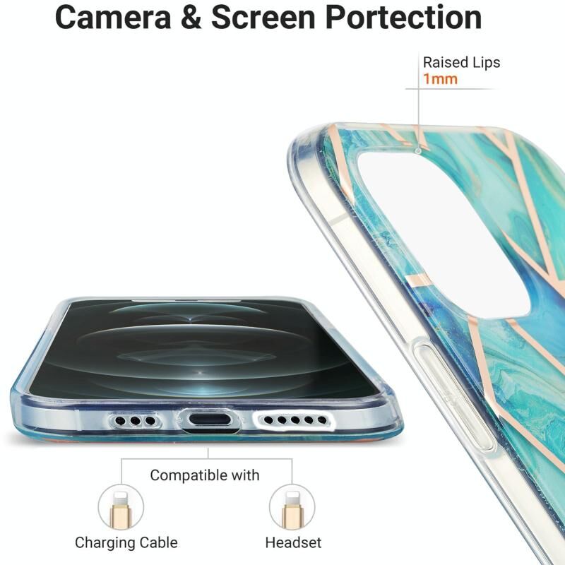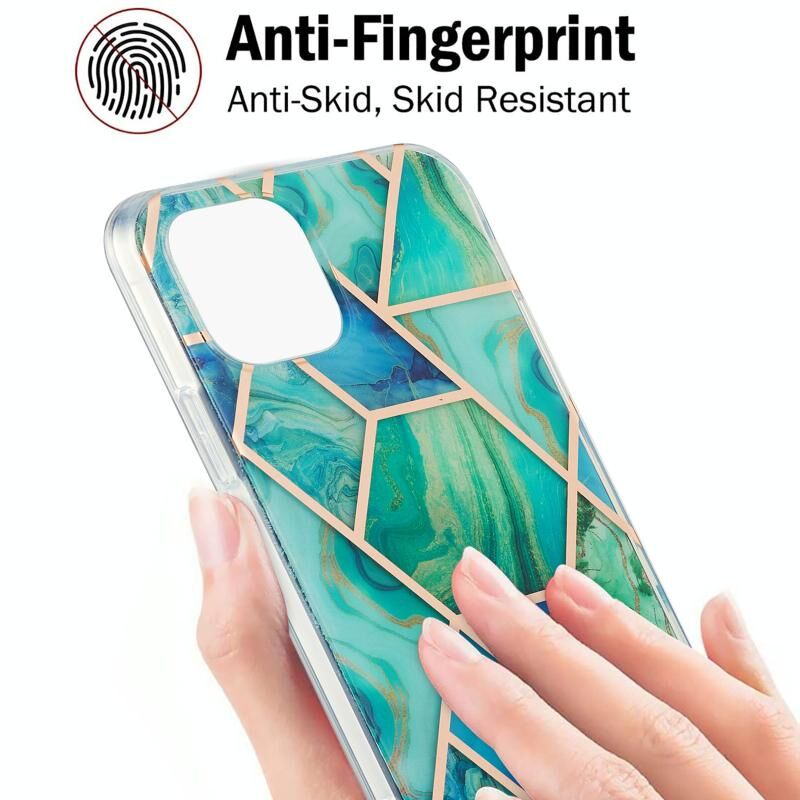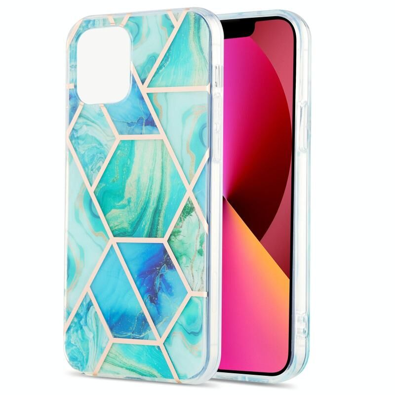 For iPhone 13 Electroplating Splicing Marble Flower Pattern Dual-side IMD TPU Shockproof Case(Green)