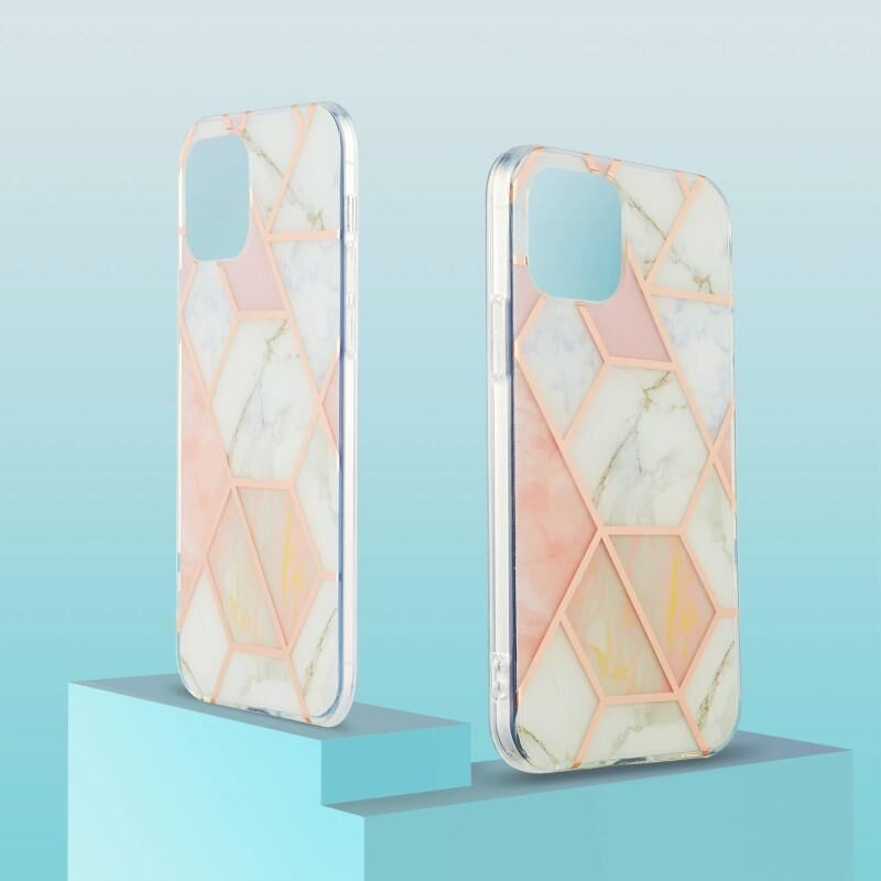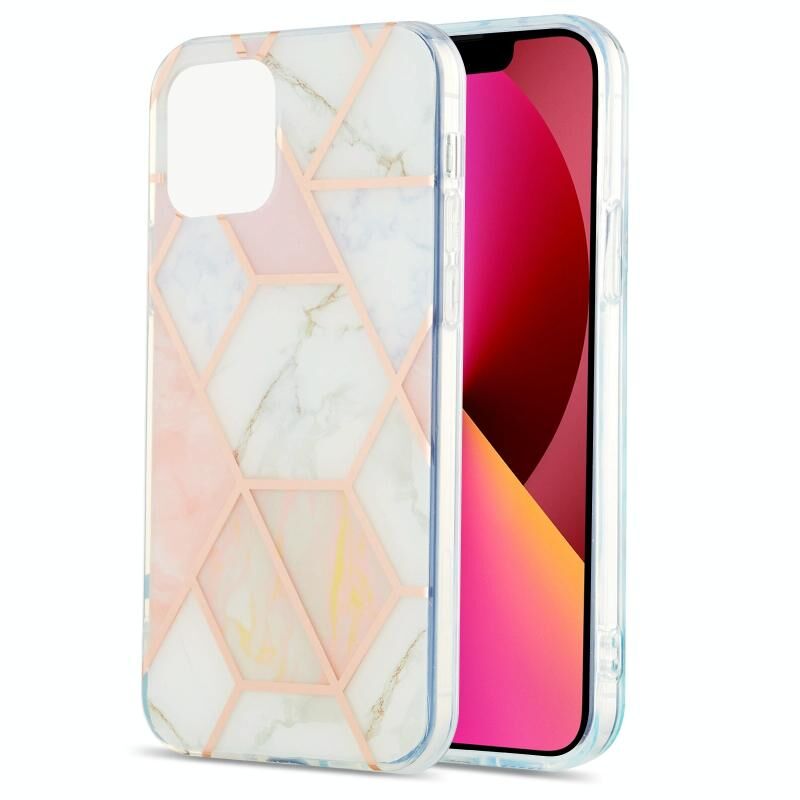 For iPhone 13 Electroplating Splicing Marble Flower Pattern Dual-side IMD TPU Shockproof Case(Pink White)