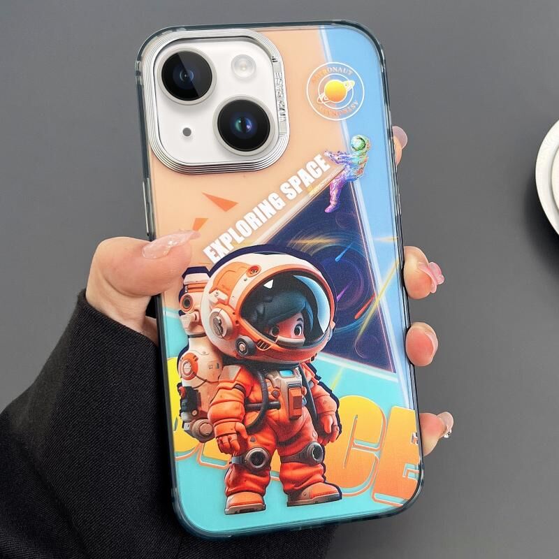 For iPhone 13 Engraved Colorful Astronaut Phone Case(Triangle Bottom)