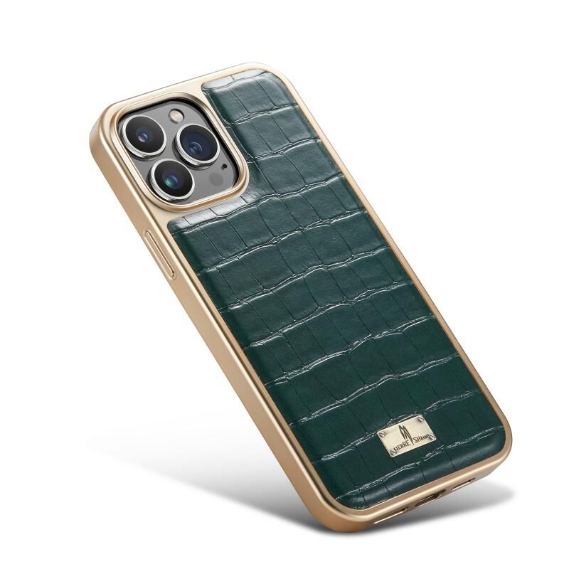 Θήκη κινητού τηλεφώνου για iPhone 13 Fierre Shann με υφή κροκόδειλου και ηλεκτρολυτική επίστρωση PU (Μαύρο) (FIERRE SHANN)