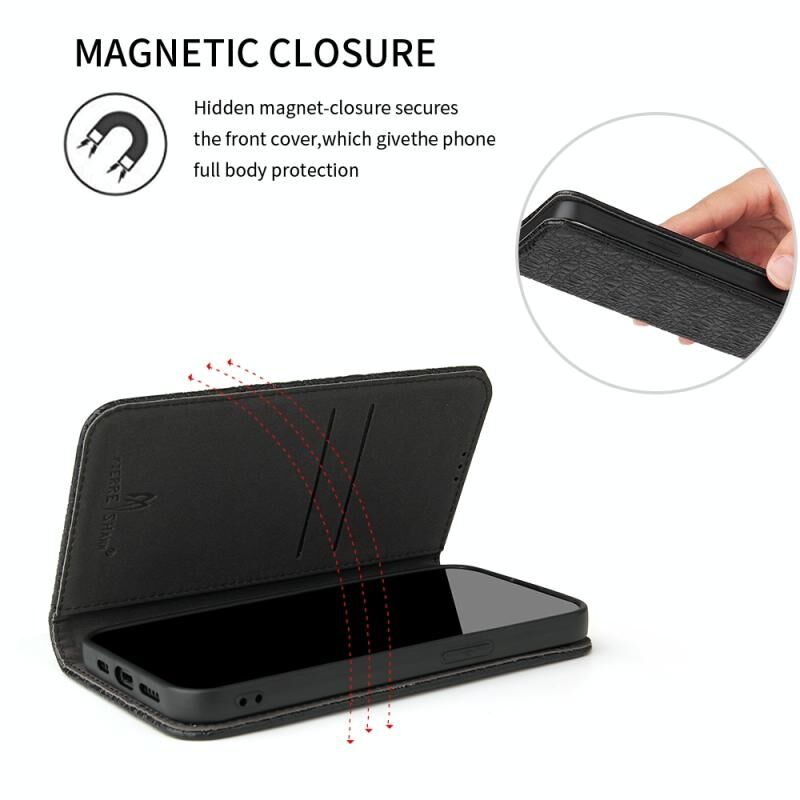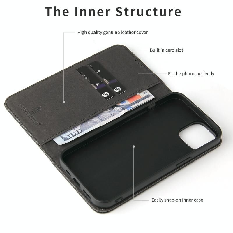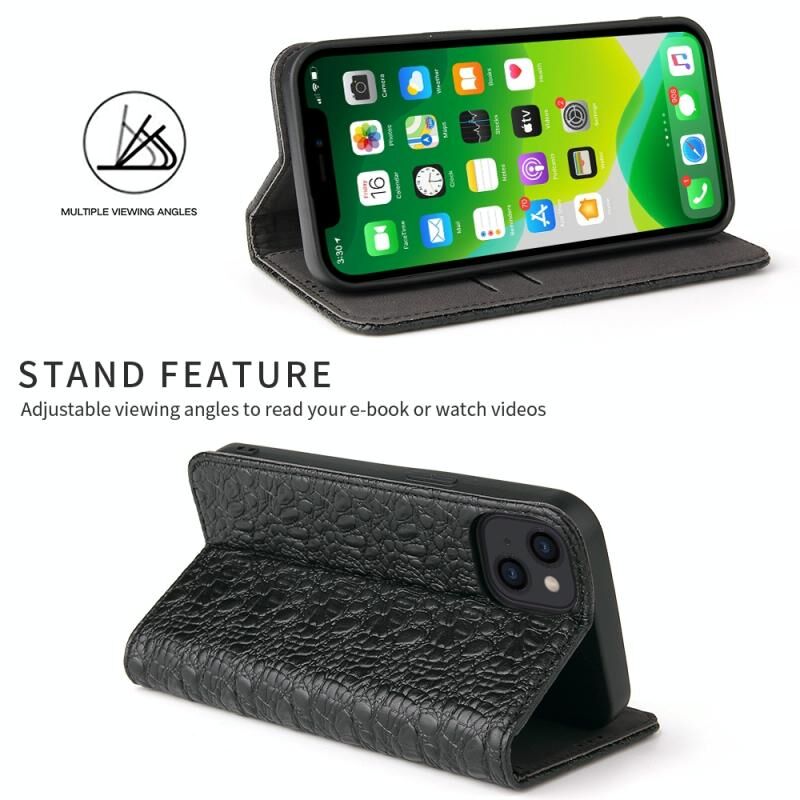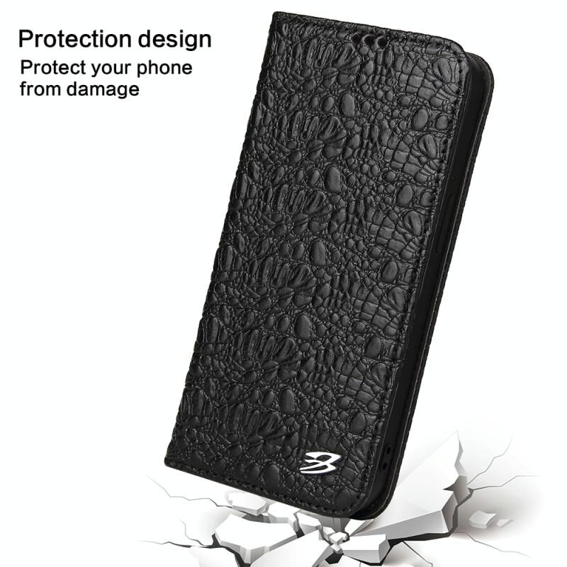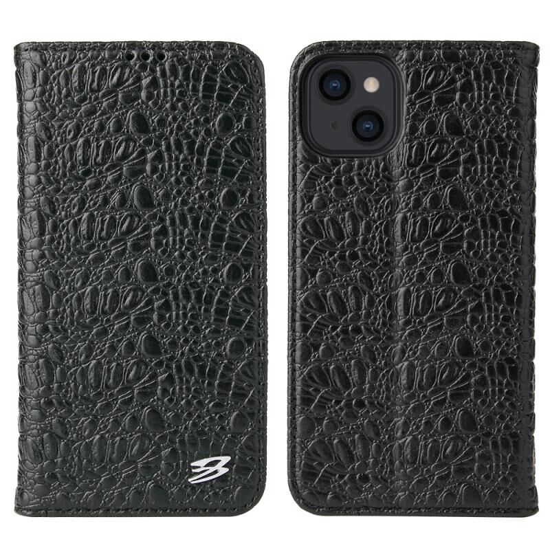 For iPhone 13 Fierre Shann Crocodile Texture Magnetic Horizontal Flip Genuine Leather Case with Holder & Card Slot(Black) (FIERRE SHANN)