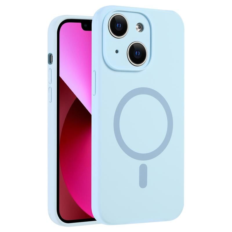 For iPhone 13 Fine Hole Pure Color Liquid Silicone MagSafe Phone Case(Sierra Blue)