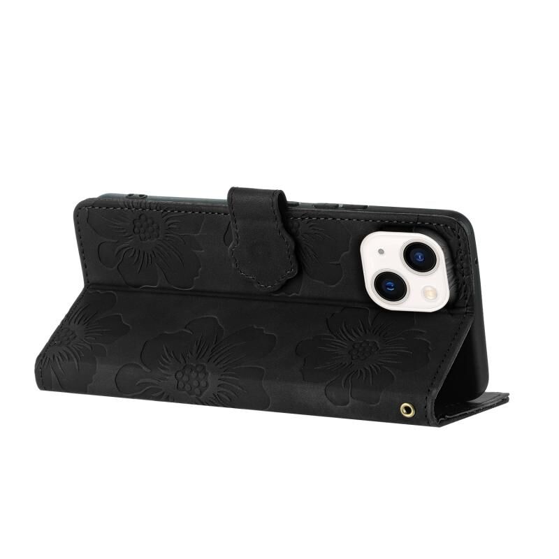 For iPhone 13 Flower Embossing Pattern Leather Phone Case(Black)