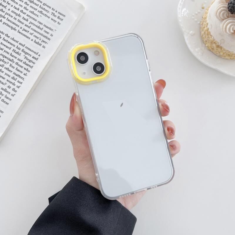Για iPhone 13 Θήκη κινητού τηλεφώνου από διαφανές TPU με πλαίσιο φακού Macaron (Κίτρινο)