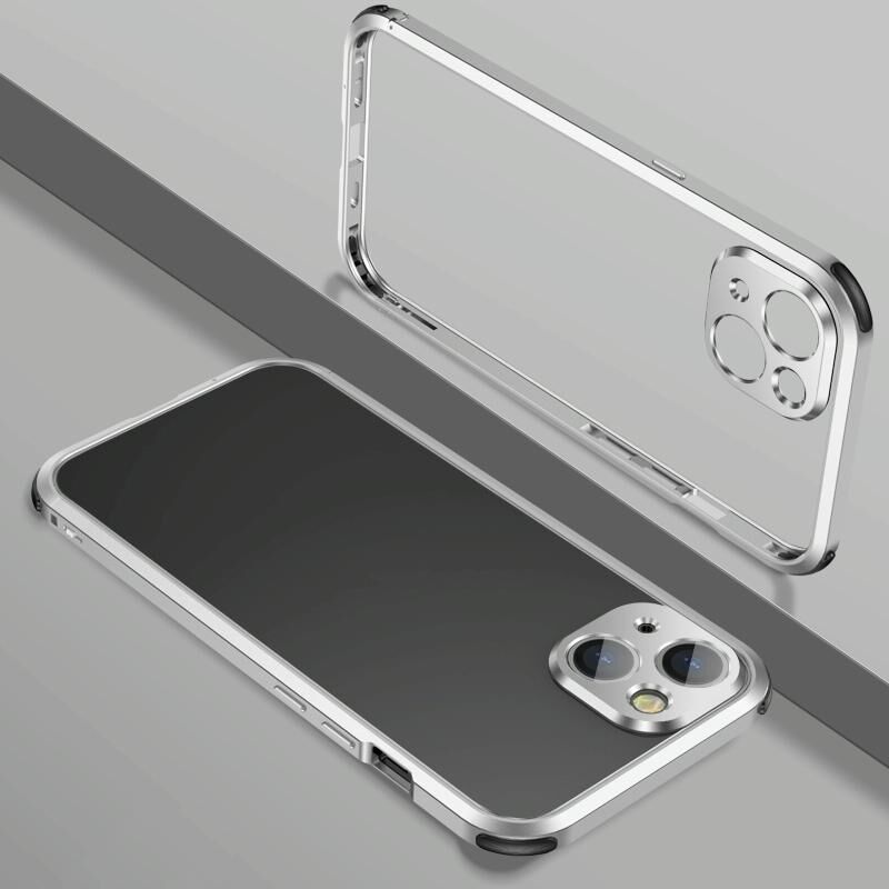 For iPhone 13 Four Corners Shockproof Metal Frame Phone Case(White)