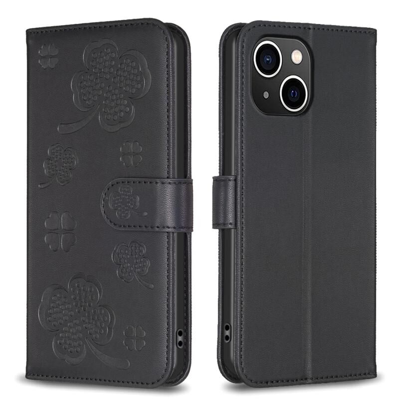 Θήκη τηλεφώνου από ανάγλυφο δέρμα με τετράφυλλο τριφύλλι για iPhone 13 (Κόκκινο Ρόδο)