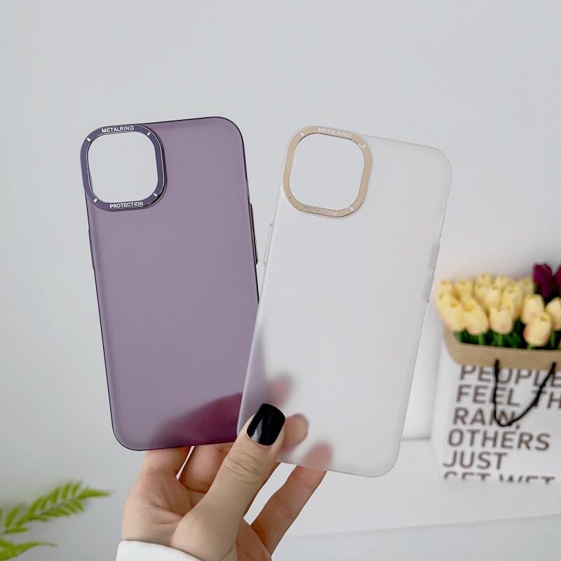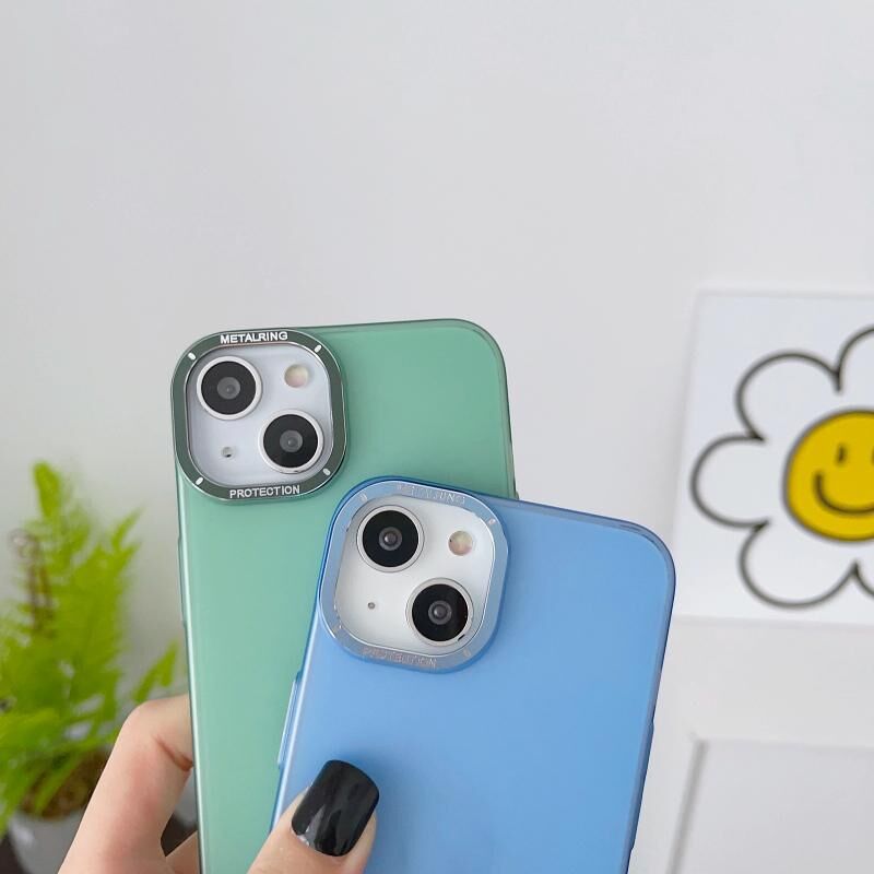 For iPhone 13 Frosted Metal Lens Frame PC Phone Case(Blue)