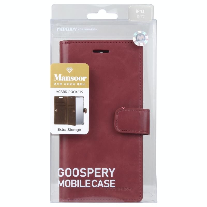 For iPhone 13 GOOSPERY MANSOOR Crazy Horse Texture Horizontal Flip Leather Case with Holder & Card Slots & Wallet(Wine Red) (GOOSPERY)