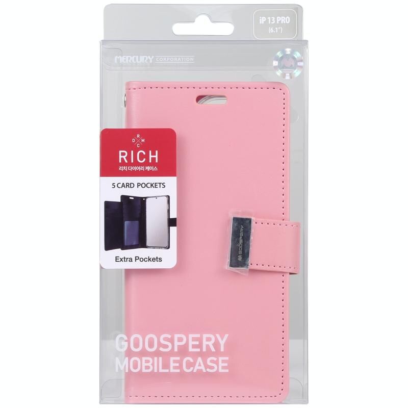 For iPhone 13 GOOSPERY RICH DIARY Crazy Horse Texture Horizontal Flip Leather Case with Holder & Card Slots & Wallet Pro Max(Pink) (GOOSPERY)
