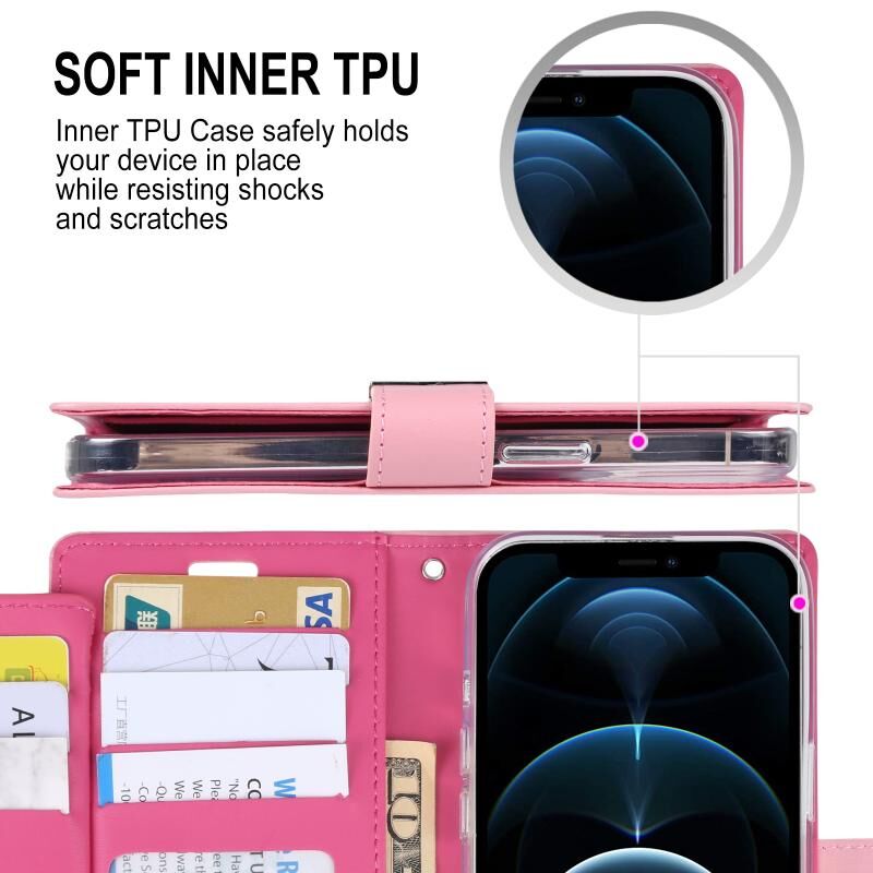 For iPhone 13 GOOSPERY RICH DIARY Crazy Horse Texture Horizontal Flip Leather Case with Holder & Card Slots & Wallet Pro Max(Rose Red) (GOOSPERY)
