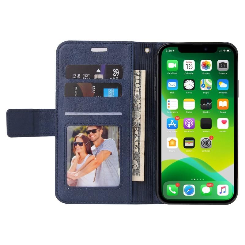 3. Θήκη πορτοφολιού με κάρτες: Συνδυασμός πορτοφολιού και θήκης κινητού τηλεφώνου, με υποδοχές για κάρτες ταυτότητας και πιστωτικές κάρτες και κορνίζα φωτογραφιών, μπορεί να χρησιμοποιηθεί ως πορτοφόλι για να κρατάει πολλές πιστωτικές κάρτες, μετρητά, ταυτότητα και χρήματα, φωτογραφίες.