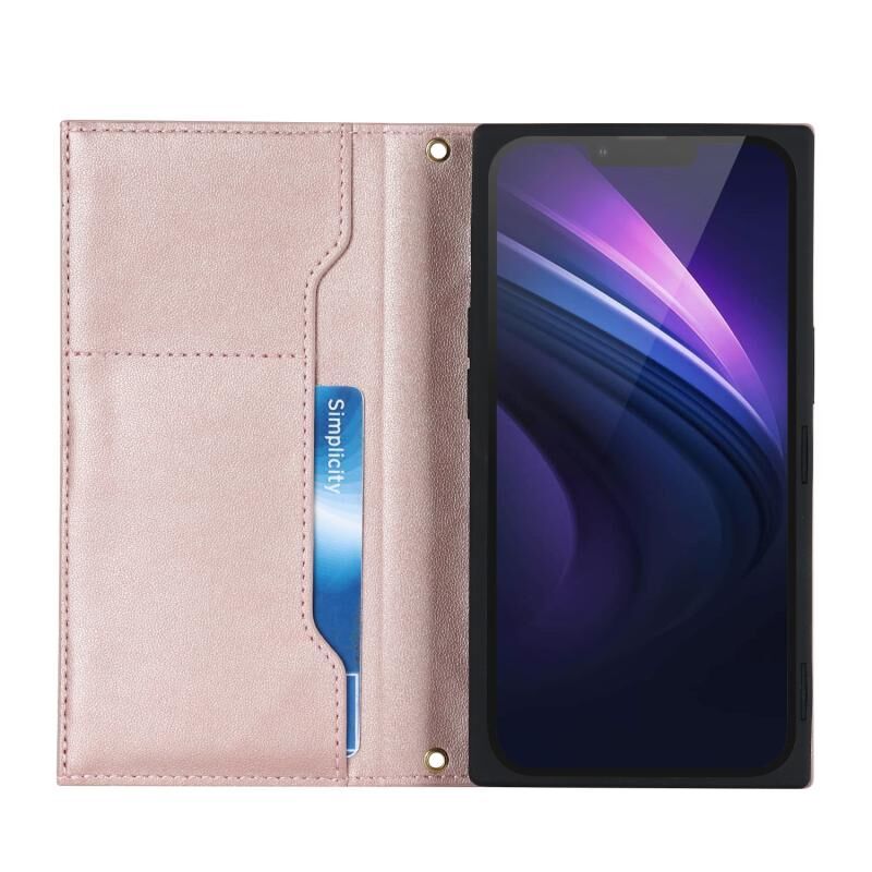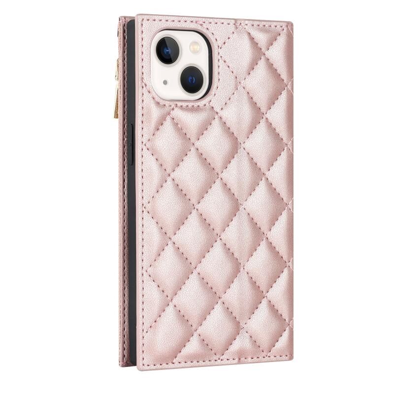 Θήκη τηλεφώνου δερμάτινη με φερμουάρ και λουρί με υφή πλέγματος για iPhone 13 (Χρυσορόδινο)