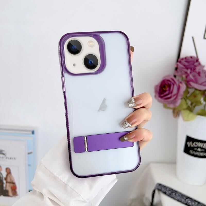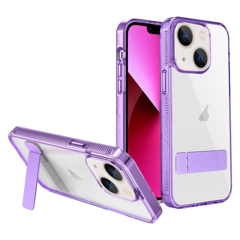 For iPhone 13 High Transparent Holder Phone Case(Purple)