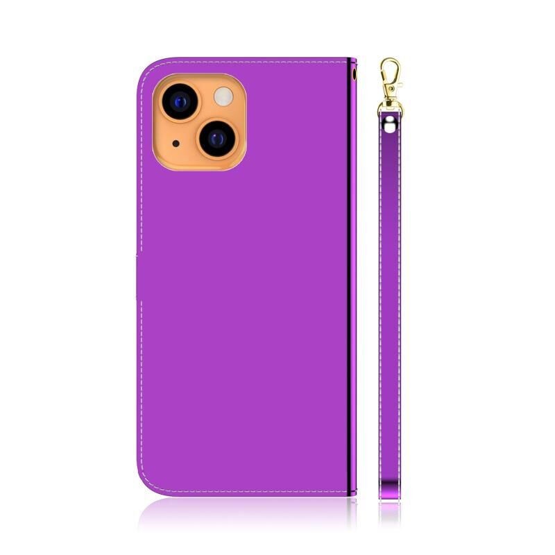 For iPhone 13 Imitated Mirror Surface Horizontal Flip Leather Case with Holder & Card Slots & Wallet & Lanyard(Purple)